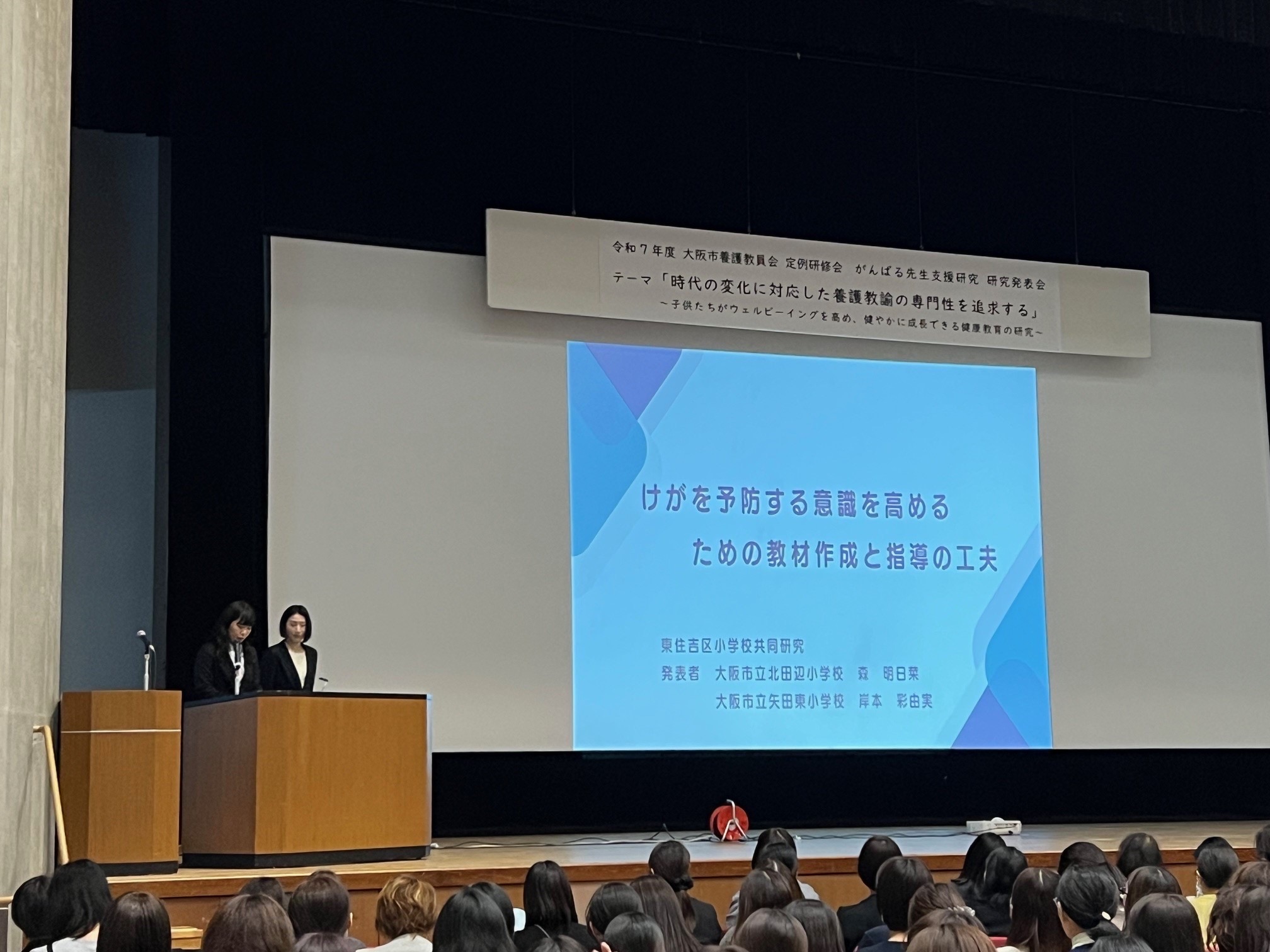 大阪市養護教員会では、平成28年4月の学校保健安全法施行規則の一部改正にともない変更された定期健康診断について、第2報「定期健康診断のさらなる充実をめざして」の研究発表をおこないました。